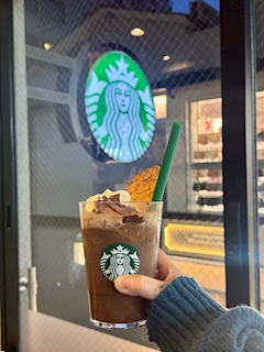 お客様にスタバギフト頂いたので 期間限定のカカオのフラペチーノ 飲んできました🍫💞 甘すぎず飲みやすかったです🥤! 今年もりかとバレンタインフェア 行ってチョコ買いました💞